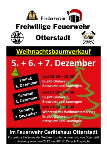 Weihnachtsbaumverkauf vom 05.12. bis 07.12.2025 in Otterstadt