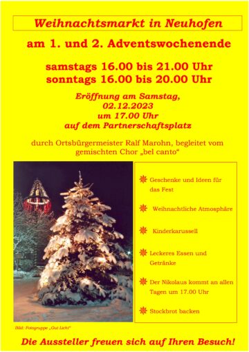 [Amtlicher Beitrag] Weihnachtsmarkt in Neuhofen am 1. und 2. Adventswochenende