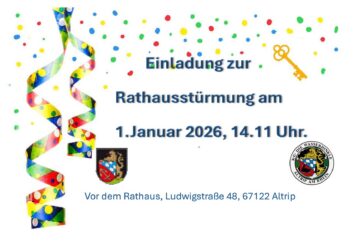 OG Altrip [Amtlicher Beitrag] Einladung zur Rathausstürmung am 01. Januar 2026, um 14.11 Uhr VGV Rheinauen Posted on 17. Dez 202511. Dez 2025