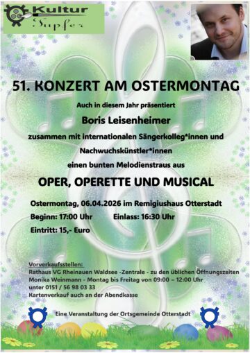 [Amtlicher Beitrag] Osterkonzert am Montag, 06.04.2026, um 17.00 Uhr, im Remigiushaus in Otterstadt